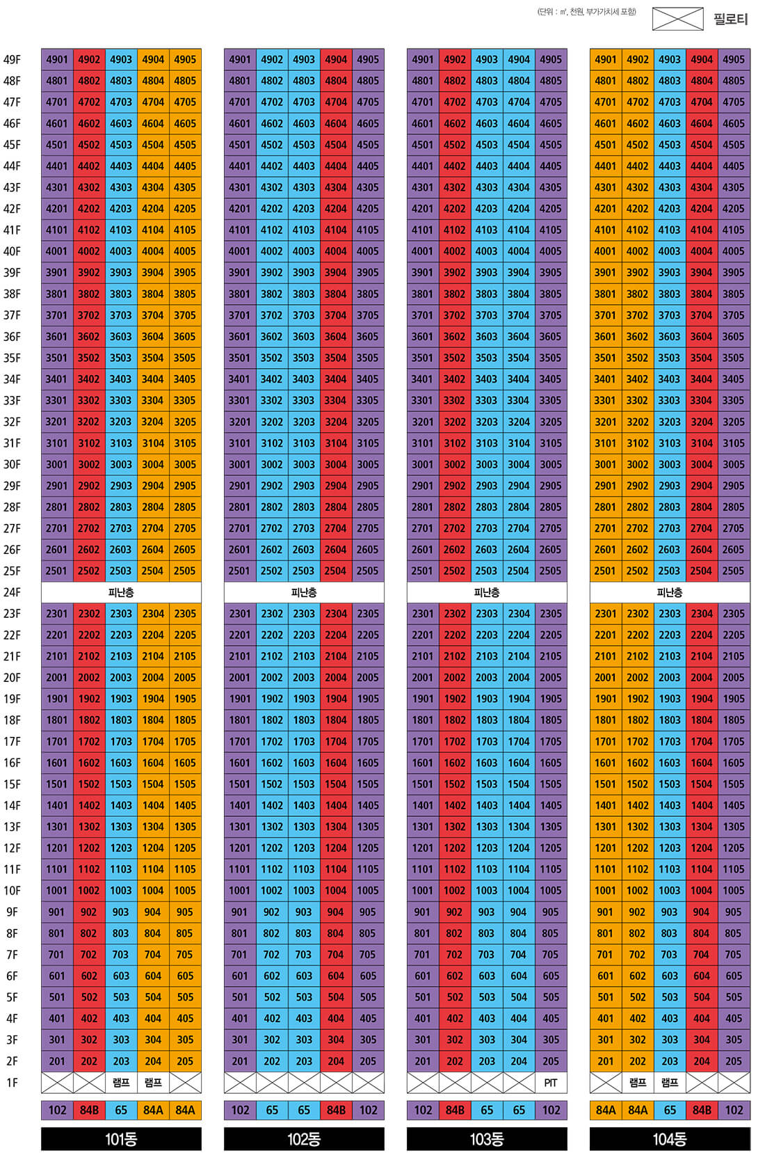 동호수: 102동 4905호, 104동 405호