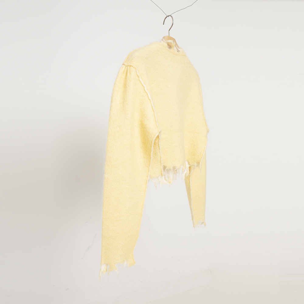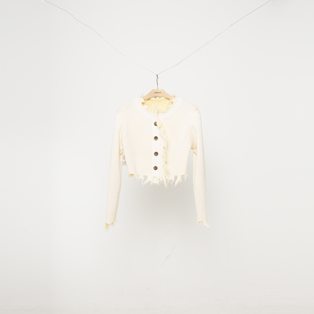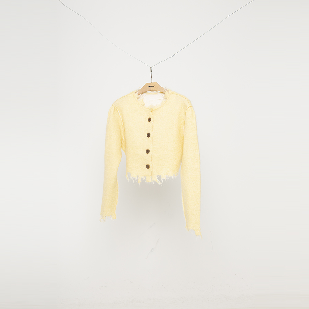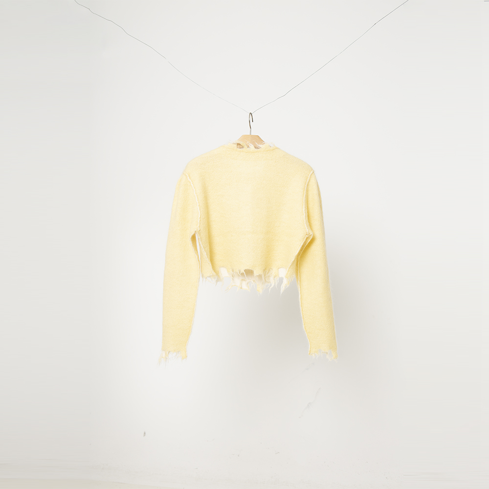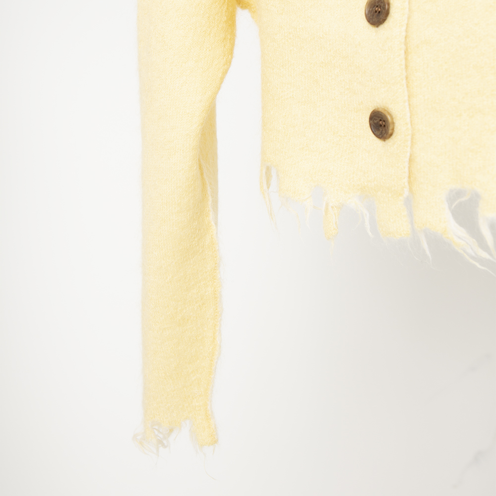 [PERVERZE] MOHAIR & WOOL DAMAGED KNIT CARDIGAN (CREAM)