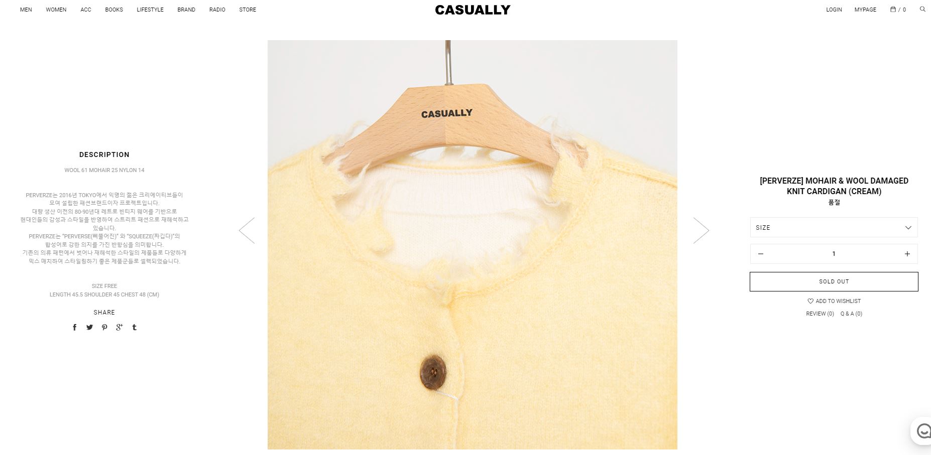 지난해 출시된 일본 브랜드의 울 소재 카디건으로 한국돈으로 약 30만 원 후반대 가격으로 알고 있습니다.