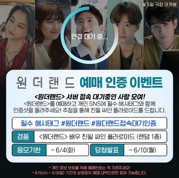 원더랜드를 예매하고 개인 SNS에 필수 해시태그와 함께 인증샷을 올려주시면