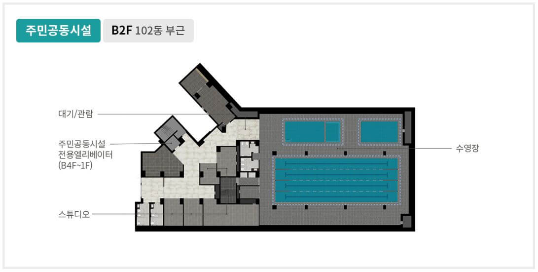 원펜타스 일반분양 단지는 지하 4층에서 지상 35층까지 6개 동으로 구성되어 있습니다.