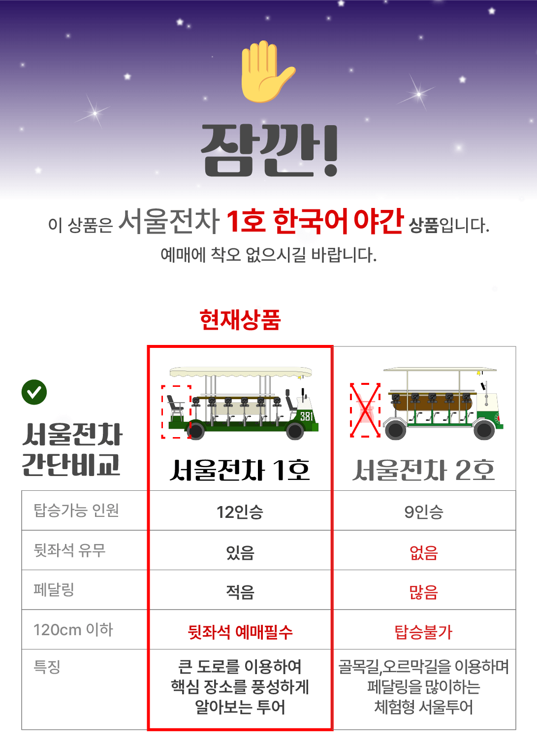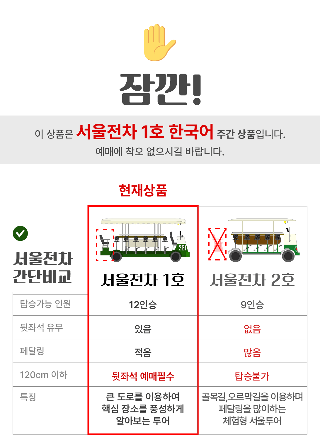 ※영어트램은 기존 서울전차와 예약 가능 인원, 투어 내용 및 비용이 다를 수 있습니다.