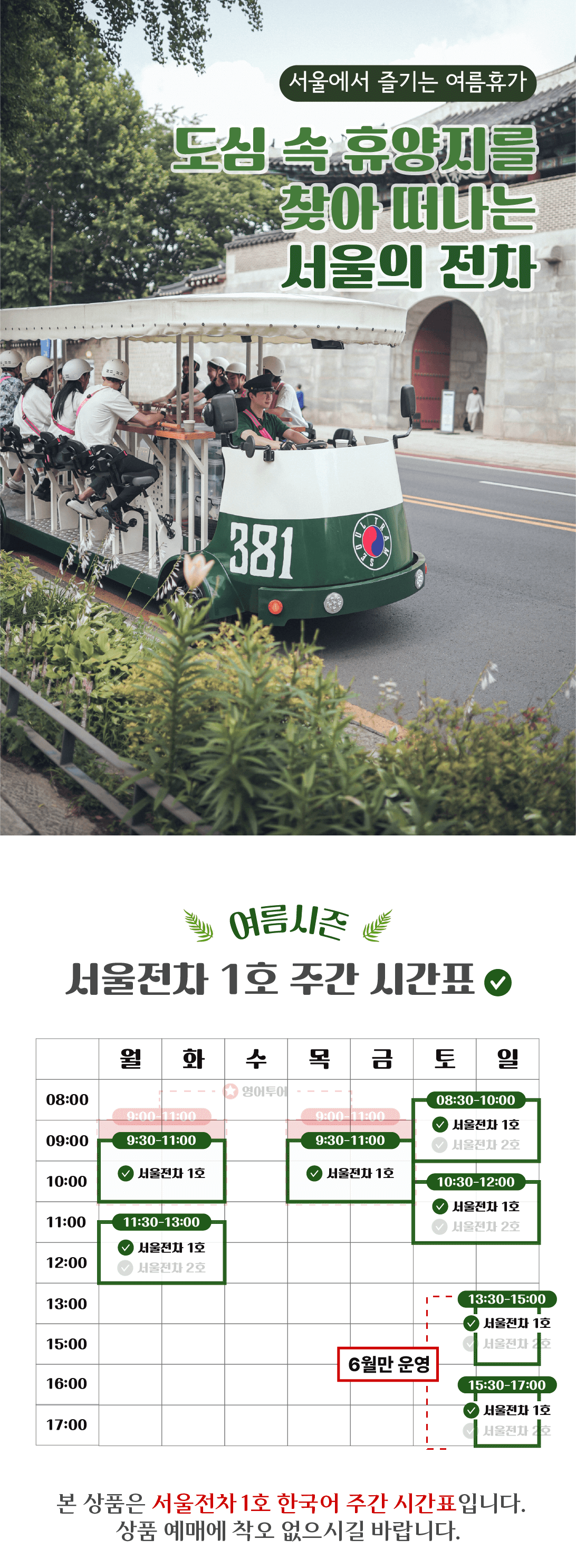 서울전차는 100% 예약제로 진행되고 있습니다. 사전예약이 필수입니다.