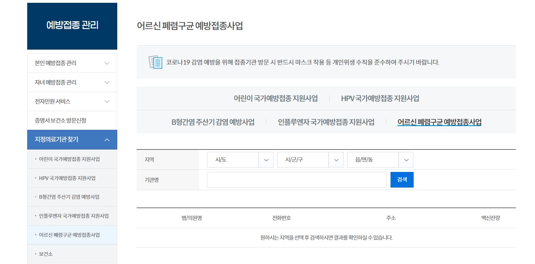 폐렴구균 예방접종 의료기관 예방접종도우미에서 알아볼 수 있습니다.