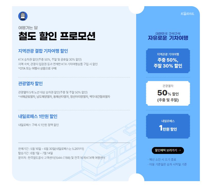 대한민국 구석구석 국내여행을 통한 지역관광 활성화를 위해 문화체육관광부, 한국관광공사와 전구의 지자체,관광업계가 함께 추진하는 캠페인으로, 다양한 할인혜택과 여행 프로그램 및 이벤트가 제공됩니다.