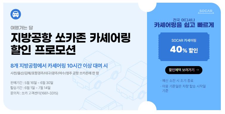 지방공항 쏘카존 카셰어링 할인 프로모션