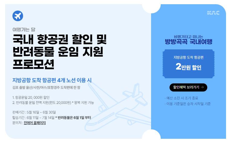 국내 항공권 할인 및 반려동물 운임 지원 프로모션