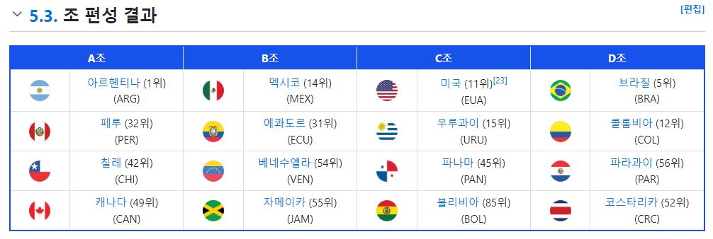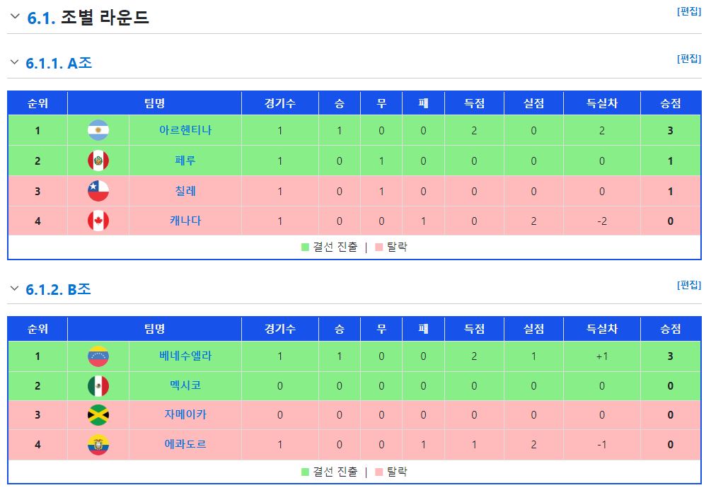 2024 코파아메리카 각 조 주요 장면을 보실 수 있습니다.