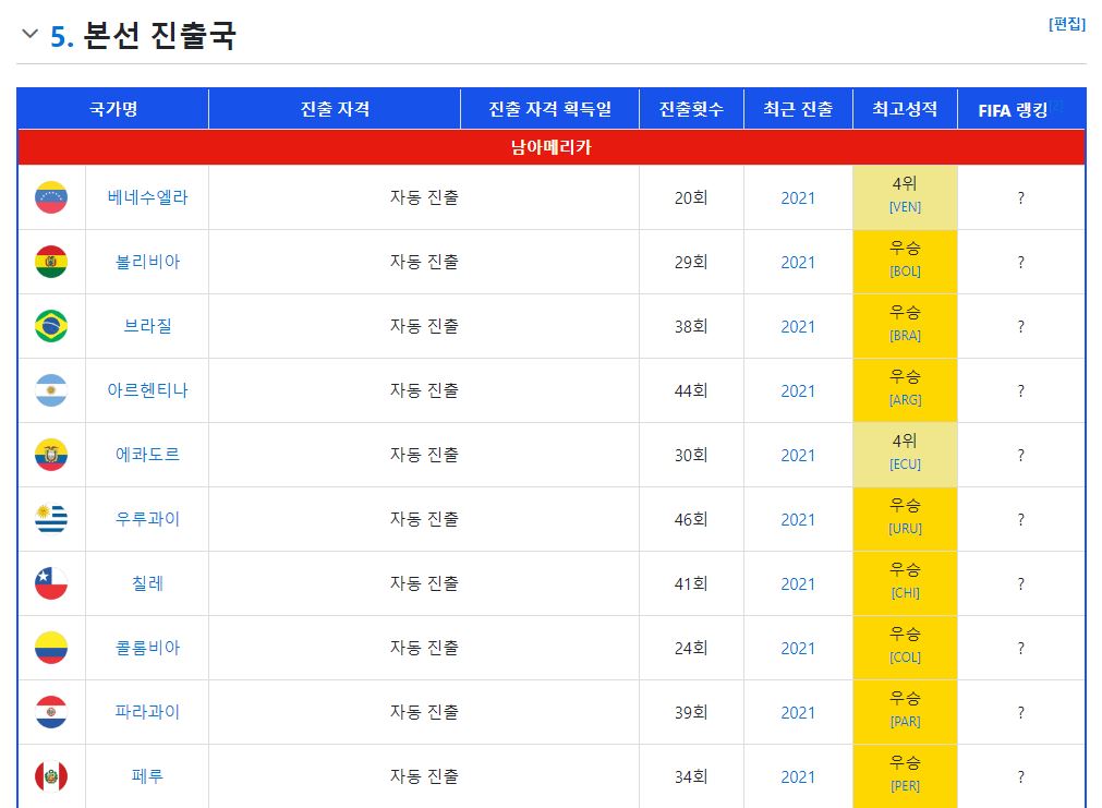 2024 코파아메리카 본선 진출국